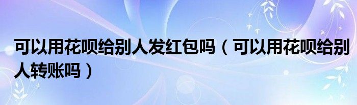 大家好,小育来为大家讲解下。可以用花呗给别人发红包吗,可以用花呗给别人转账吗很多人还不知道,现在让我们一起来看看吧!