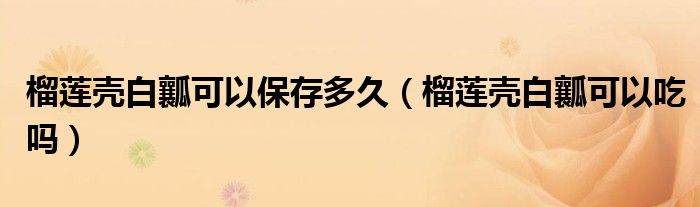 大家好,小育来为大家讲解下。榴莲壳白瓤可以保存多久,榴莲壳白瓤可以吃吗很多人还不知道,现在让我们一起来看看吧!