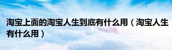 大家好,小育来为大家讲解下。淘宝上面的淘宝人生到底有什么用,淘宝人生有什么用很多人还不知道,现在让我们一起来看看吧!