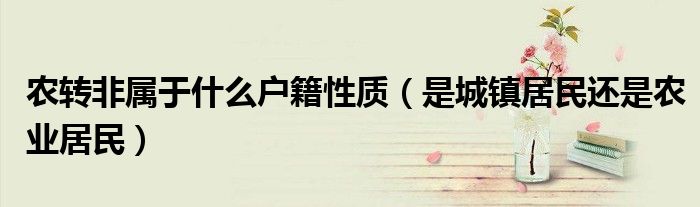 大家好,伊人来为大家解答以上问题。农转非属于什么户籍性质,是城镇居民还是农业居民很多人还不知道,现在让我们一起来看看吧!