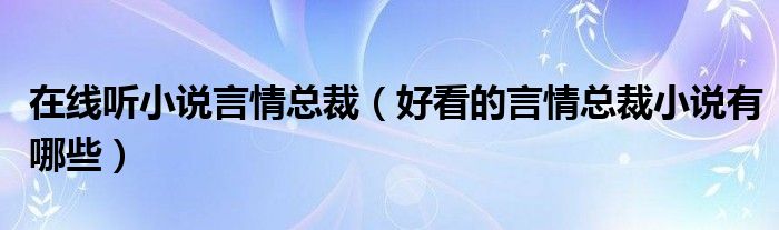 大家好,小育来为大家讲解下。在线听小说言情总裁,好看的言情总裁小说有哪些很多人还不知道,现在让我们一起来看看吧!