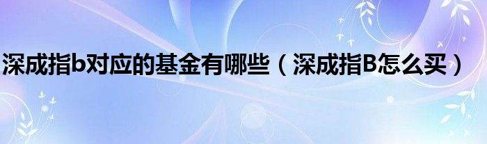 大家好,小育来为大家讲解下。深成指b对应的基金有哪些,深成指B怎么买很多人还不知道,现在让我们一起来看看吧!