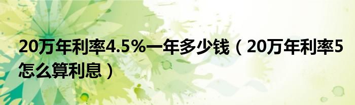 大家好,小育来为大家讲解下。20万年利率4.5%一年多少钱,20万年利率5怎么算利息很多人还不知道,现在让我们一起来看看吧!