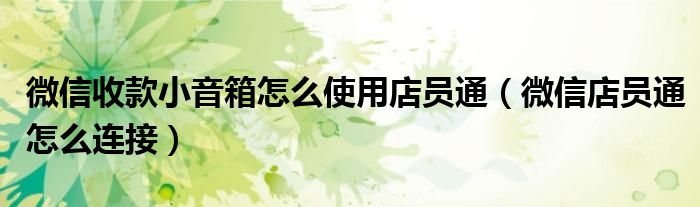 大家好,小育来为大家讲解下。微信收款小音箱怎么使用店员通,微信店员通怎么连接很多人还不知道,现在让我们一起来看看吧!