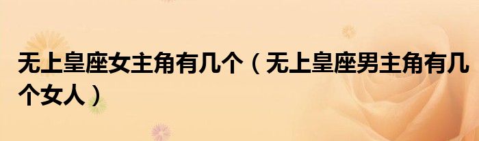 大家好,小育来为大家讲解下。无上皇座女主角有几个,无上皇座男主角有几个女人很多人还不知道,现在让我们一起来看看吧!
