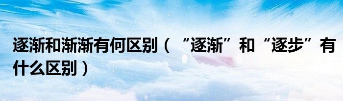 大家好,小育来为大家讲解下。逐渐和渐渐有何区别,“逐渐”和“逐步”有什么区别很多人还不知道,现在让我们一起来看看吧!
