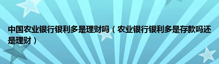 大家好,小育来为大家讲解下。中国农业银行银利多是理财吗,农业银行银利多是存款吗还是理财很多人还不知道,现在让我们一起来看看吧!