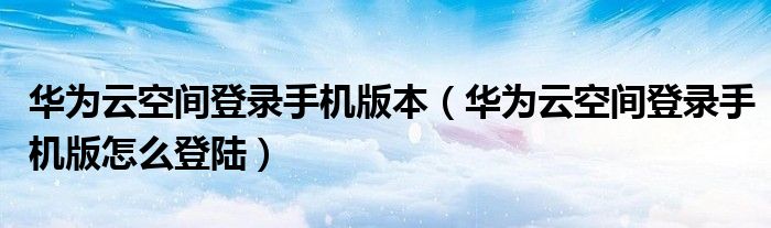 大家好,小育来为大家讲解下。华为云空间登录手机版本,华为云空间登录手机版怎么登陆很多人还不知道,现在让我们一起来看看吧!