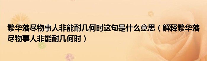 大家好,伊人来为大家解答以上问题。繁华落尽物事人非能耐几何时这句是什么意思,解释繁华落尽物事人非能耐几何时很多人还不知道,现在让我们一起来看看吧!
