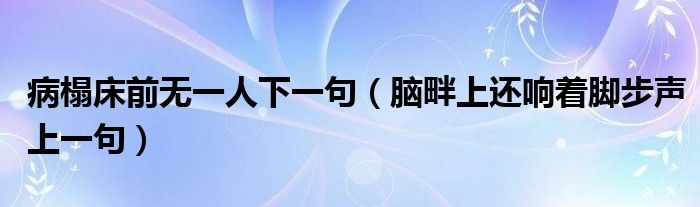 大家好,小育来为大家讲解下。病榻床前无一人下一句,脑畔上还响着脚步声上一句很多人还不知道,现在让我们一起来看看吧!