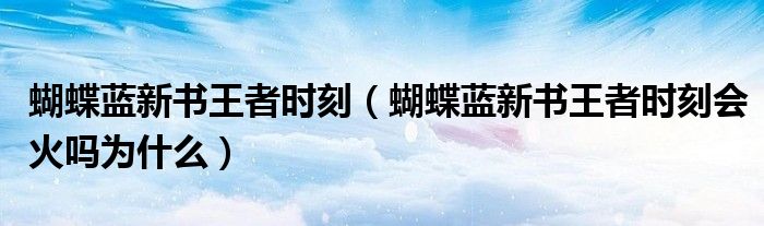 大家好,小育来为大家讲解下。蝴蝶蓝新书王者时刻,蝴蝶蓝新书王者时刻会火吗为什么很多人还不知道,现在让我们一起来看看吧!