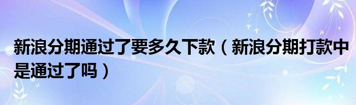 大家好,小育来为大家讲解下。新浪分期通过了要多久下款,新浪分期打款中是通过了吗很多人还不知道,现在让我们一起来看看吧!