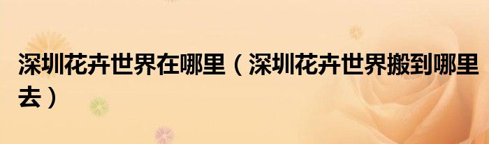 大家好,小育来为大家讲解下。深圳花卉世界在哪里,深圳花卉世界搬到哪里去很多人还不知道,现在让我们一起来看看吧!