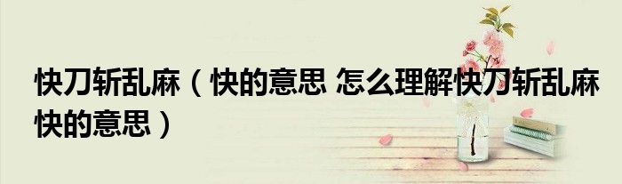 大家好,伊人来为大家解答以上问题。快刀斩乱麻,快的意思 怎么理解快刀斩乱麻快的意思很多人还不知道,现在让我们一起来看看吧!