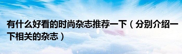 大家好,伊人来为大家解答以上问题。有什么好看的时尚杂志推荐一下,分别介绍一下相关的杂志很多人还不知道,现在让我们一起来看看吧!