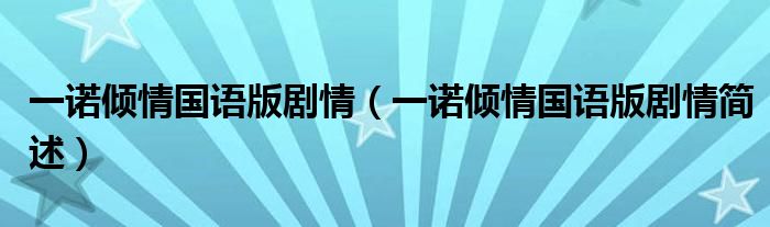 大家好,伊人来为大家解答以上问题。一诺倾情国语版剧情,一诺倾情国语版剧情简述很多人还不知道,现在让我们一起来看看吧!