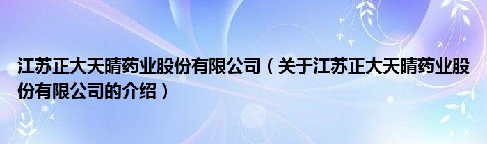 大家好,小新来为大家解答以上的问题。江苏正大天晴药业股份有限公司,关于江苏正大天晴药业股份有限公司的介绍很多人还不知道,现在让我们一起来看看吧!