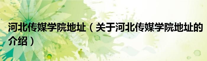 大家好,小新来为大家解答以上的问题。河北传媒学院地址,关于河北传媒学院地址的介绍很多人还不知道,现在让我们一起来看看吧!