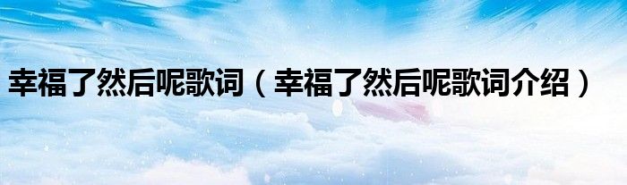 大家好,伊人来为大家解答以上问题。幸福了然后呢歌词,幸福了然后呢歌词介绍很多人还不知道,现在让我们一起来看看吧!