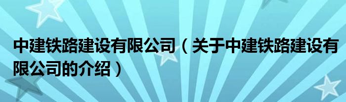 大家好,小新来为大家解答以上的问题。中建铁路建设有限公司,关于中建铁路建设有限公司的介绍很多人还不知道,现在让我们一起来看看吧!