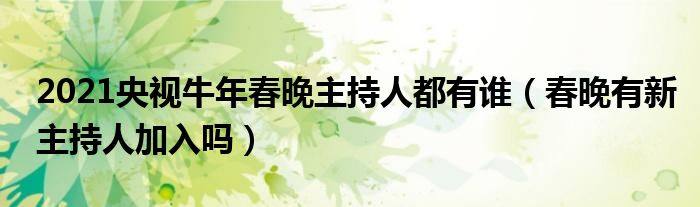 大家好,伊人来为大家解答以上问题。2021央视牛年春晚主持人都有谁,春晚有新主持人加入吗很多人还不知道,现在让我们一起来看看吧!
