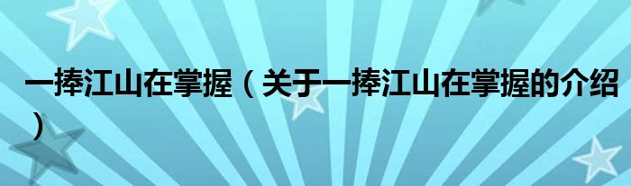 大家好,小新来为大家解答以上的问题。一捧江山在掌握,关于一捧江山在掌握的介绍很多人还不知道,现在让我们一起来看看吧!