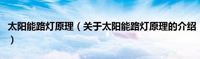 大家好,小新来为大家解答以上的问题。太阳能路灯原理,关于太阳能路灯原理的介绍很多人还不知道,现在让我们一起来看看吧!