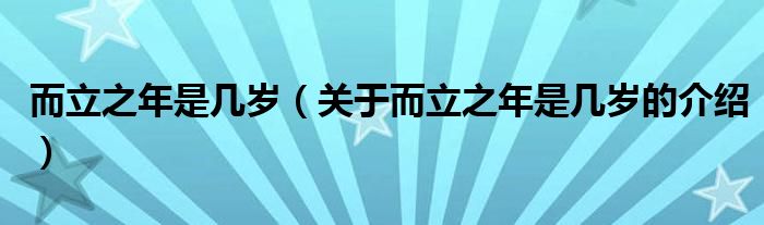 大家好,小新来为大家解答以上的问题。而立之年是几岁,关于而立之年是几岁的介绍很多人还不知道,现在让我们一起来看看吧!
