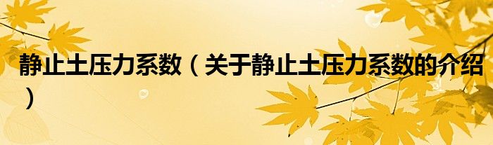 大家好,小新来为大家解答以上的问题。静止土压力系数,关于静止土压力系数的介绍很多人还不知道,现在让我们一起来看看吧!