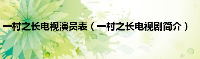 大家好,伊人来为大家解答以上问题。一村之长电视演员表,一村之长电视剧简介很多人还不知道,现在让我们一起来看看吧!