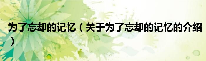 大家好,小新来为大家解答以上的问题。为了忘却的记忆,关于为了忘却的记忆的介绍很多人还不知道,现在让我们一起来看看吧!