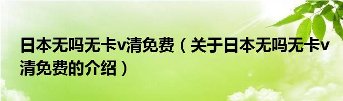 大家好,小新来为大家解答以上的问题。日本无吗无卡v清免费,关于日本无吗无卡v清免费的介绍很多人还不知道,现在让我们一起来看看吧!