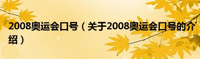 大家好,小新来为大家解答以上的问题。2008奥运会口号,关于2008奥运会口号的介绍很多人还不知道,现在让我们一起来看看吧!