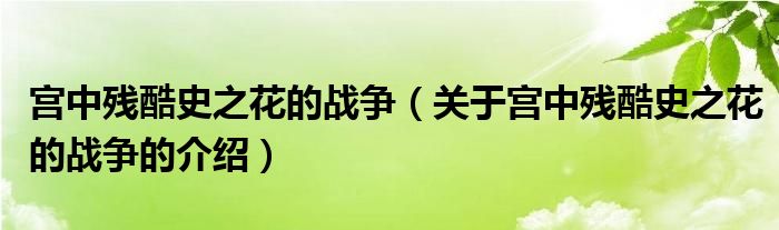 大家好,小新来为大家解答以上的问题。宫中残酷史之花的战争,关于宫中残酷史之花的战争的介绍很多人还不知道,现在让我们一起来看看吧!