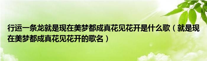 大家好,伊人来为大家解答以上问题。行运一条龙就是现在美梦都成真花见花开是什么歌,就是现在美梦都成真花见花开的歌名很多人还不知道,现在让我们一起来看看吧!