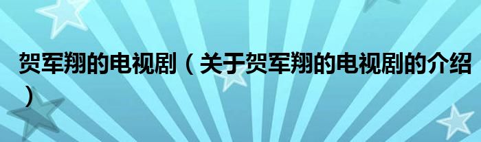 大家好,小新来为大家解答以上的问题。贺军翔的电视剧,关于贺军翔的电视剧的介绍很多人还不知道,现在让我们一起来看看吧!