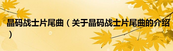大家好,小新来为大家解答以上的问题。晶码战士片尾曲,关于晶码战士片尾曲的介绍很多人还不知道,现在让我们一起来看看吧!