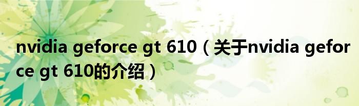 大家好,小新来为大家解答以上的问题。nvidia geforce gt 610,关于nvidia geforce gt 610的介绍很多人还不知道,现在让我们一起来看看吧!
