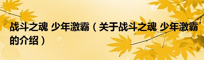 大家好,小新来为大家解答以上的问题。战斗之魂 少年激霸,关于战斗之魂 少年激霸的介绍很多人还不知道,现在让我们一起来看看吧!