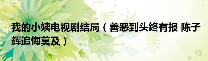 大家好,伊人来为大家解答以上问题。我的小姨电视剧结局,善恶到头终有报 陈子辉追悔莫及很多人还不知道,现在让我们一起来看看吧!