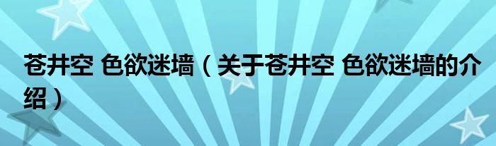 大家好,小新来为大家解答以上的问题。苍井空 色欲迷墙,关于苍井空 色欲迷墙的介绍很多人还不知道,现在让我们一起来看看吧!