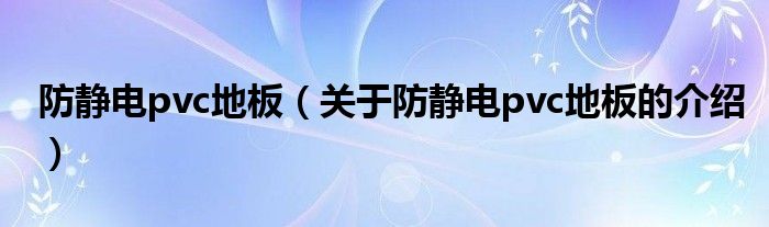大家好,小新来为大家解答以上的问题。防静电pvc地板,关于防静电pvc地板的介绍很多人还不知道,现在让我们一起来看看吧!