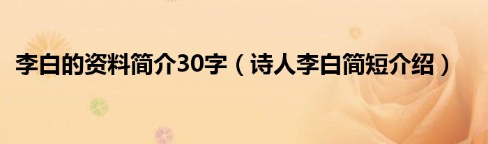 大家好,伊人来为大家解答以上问题。李白的资料简介30字,诗人李白简短介绍很多人还不知道,现在让我们一起来看看吧!