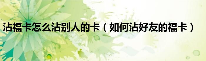 大家好,伊人来为大家解答以上问题。沾福卡怎么沾别人的卡,如何沾好友的福卡很多人还不知道,现在让我们一起来看看吧!