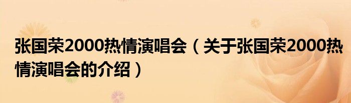 大家好,小新来为大家解答以上的问题。张国荣2000热情演唱会,关于张国荣2000热情演唱会的介绍很多人还不知道,现在让我们一起来看看吧!