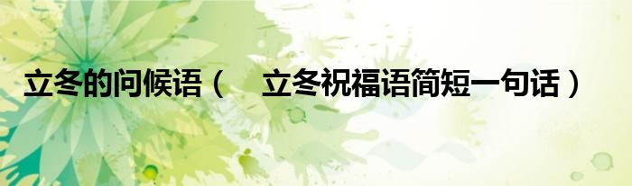 大家好,伊人来为大家解答以上问题。立冬的问候语, 立冬祝福语简短一句话很多人还不知道,现在让我们一起来看看吧!