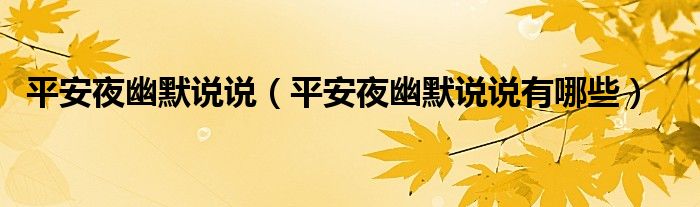 大家好,伊人来为大家解答以上问题。平安夜幽默说说,平安夜幽默说说有哪些很多人还不知道,现在让我们一起来看看吧!