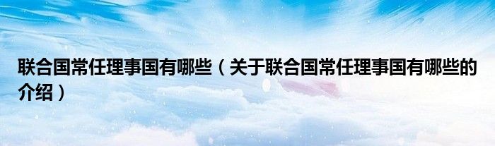 大家好,小新来为大家解答以上的问题。联合国常任理事国有哪些,关于联合国常任理事国有哪些的介绍很多人还不知道,现在让我们一起来看看吧!