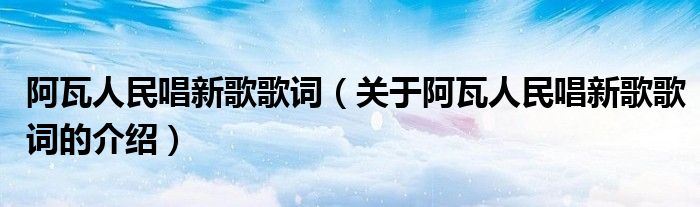 大家好,小新来为大家解答以上的问题。阿瓦人民唱新歌歌词,关于阿瓦人民唱新歌歌词的介绍很多人还不知道,现在让我们一起来看看吧!