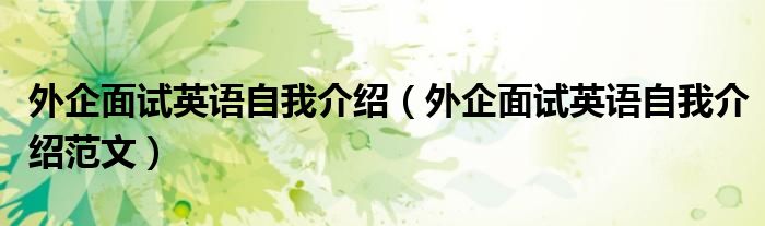 大家好,伊人来为大家解答以上问题。外企面试英语自我介绍,外企面试英语自我介绍范文很多人还不知道,现在让我们一起来看看吧!